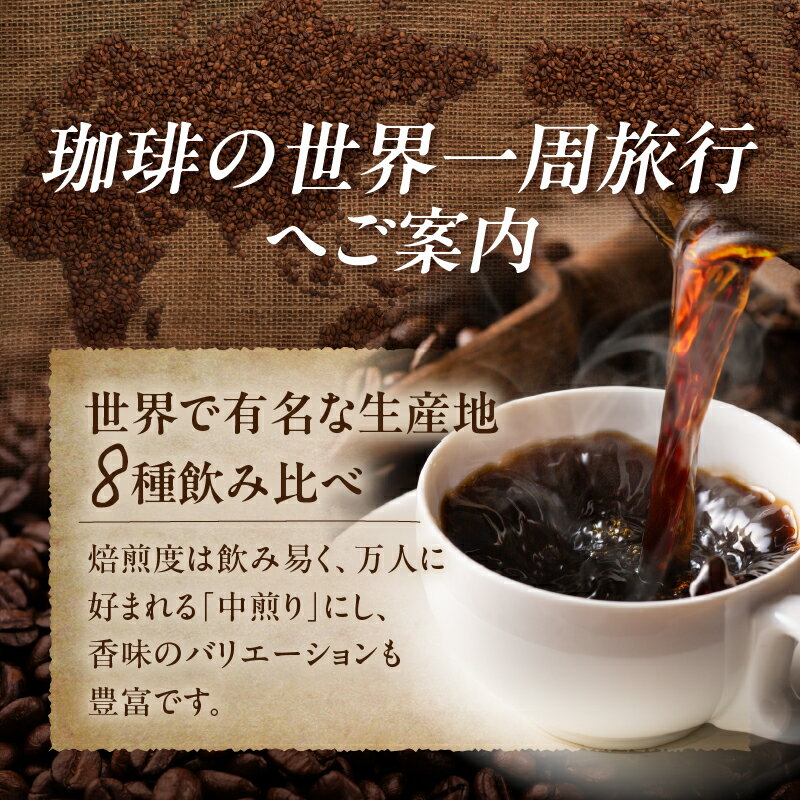 - 【ふるさと納税】珈琲で世界一周!世界の珈琲 \ギフトボックス入り/【8種800g(1種100g×8個)】※挽き方をお選びください※ 中煎り コーヒー コーヒー豆 粉 珈琲 カフェ 飲み比べ 贈り物 ギフト 豆 西尾市 送料無料 F034