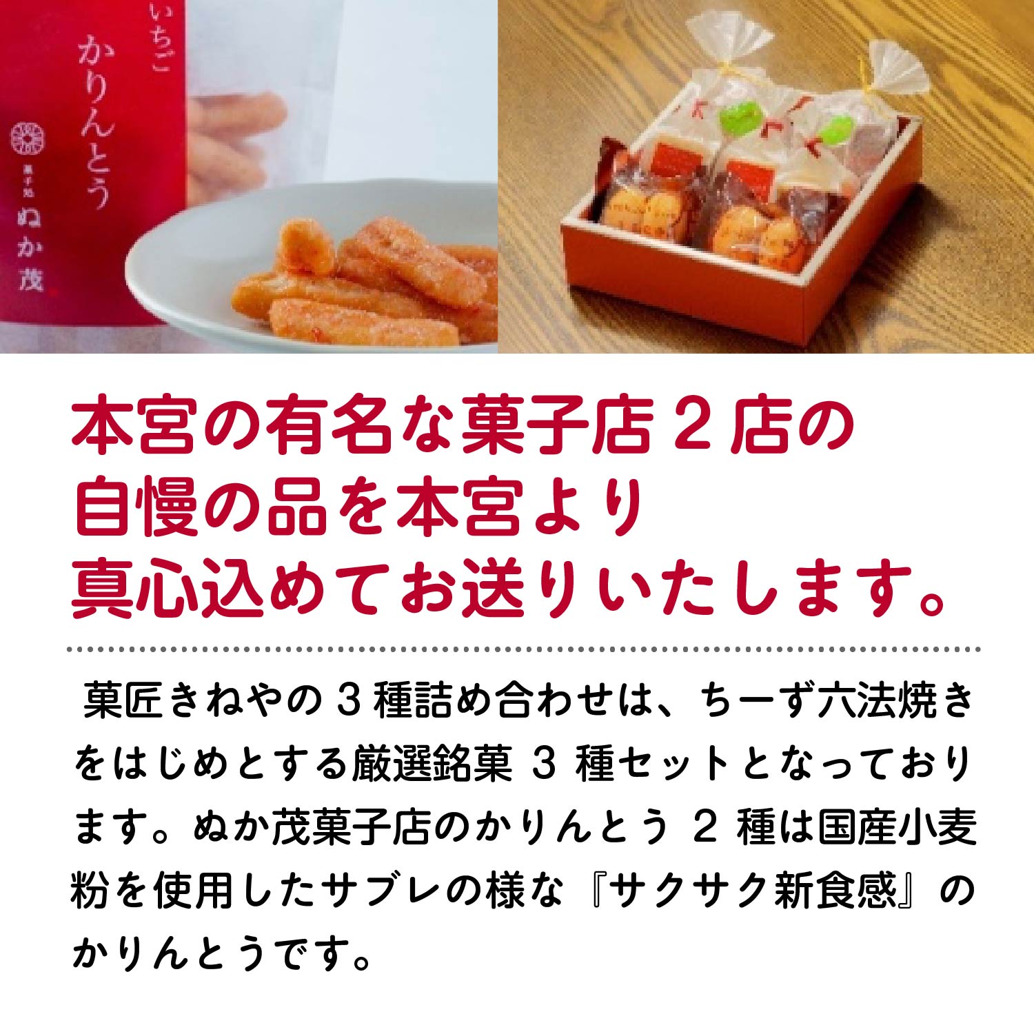 【ふるさと納税】[菓匠きねや・ぬか茂菓子店]お菓子3種詰め合わせ・かりんとう2種セット 本宮市 福島県 送料無料 Mot.Comもとみや【07214-0406】