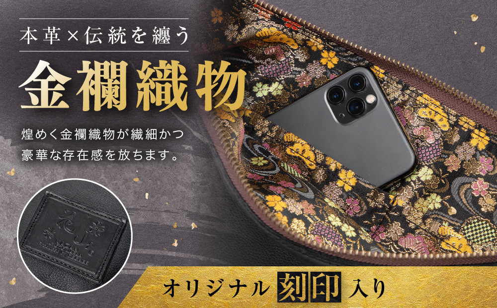 【デグナー】レザーボディバッグ バナナ [W-105K] 流水雪輪 ブラック|京都 バイクギア 人気ブランド バイク[ レザー バッグ 金襴織物 おしゃれ 人気 おすすめ 革 牛革 ツーリング ライダー バイカー バイク お取り寄せ 通販 送料無料 ふるさと納税 ] 261009_A-JR160