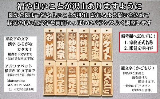 - ストラップ・ネックレス〈小〉彫刻木札【家紋入】御蔵島本黄楊(フダヤドットコム.二丁纏)(紐:えんじ、和柄:吉原つなぎ)