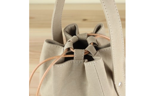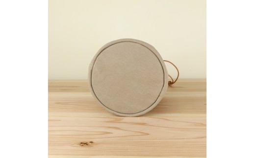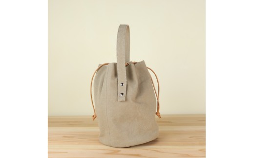 バッグ 丸底の巾着バッグ グレーベージュ L [アトリエSASSA 富山県 朝日町 34310192] 丸底 巾着 鞄 かばん カバン 帆布 革 おしゃれ 手作り シンプル レザー