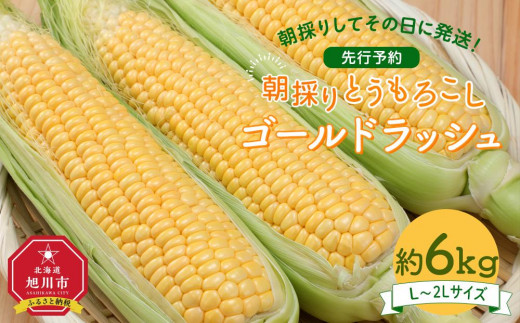 【26年先行予約】朝採り とうもろこし ゴールドラッシュ 約6kg (L~2Lサイズ×15本) (2026年8月中旬発送予定) 【 人気 北海道産 糖度 生 野菜 スイートコーン 産地直送 バーベキュー BBQ コーン 旬 お取り寄せ 旭川市 北海道 】_01707