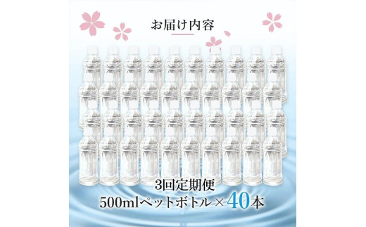 【桜屋】3回 定期便 シリカ天然水「サクラシリカ」500ml 40本 計120本 定期便 シリカ含有量99mg/L シリカ水 ラベルレス 水 ミネラルウォーター 飲料水 飲料 ペットボトル ナチュラルウォーター サルフェート 炭酸水素イオン ミネラル 国産 阿蘇 小国郷