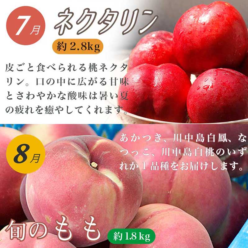 - [年6回定期便] 小布施町の人気フルーツ定期便6カ月コース [小布施屋] フルーツ 果物 ネクタリン もも 白桃 シャインマスカット 林檎 りんご リンゴ 秋映 シナノスイート シナノゴールド サンふじ お楽しみ 長野県産 令和7年産 【2025年7月~12月発送】