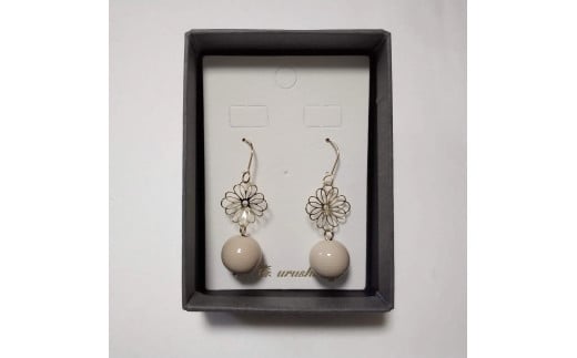 - 輪島うるし塗 ピアス フラワー マユ(白)