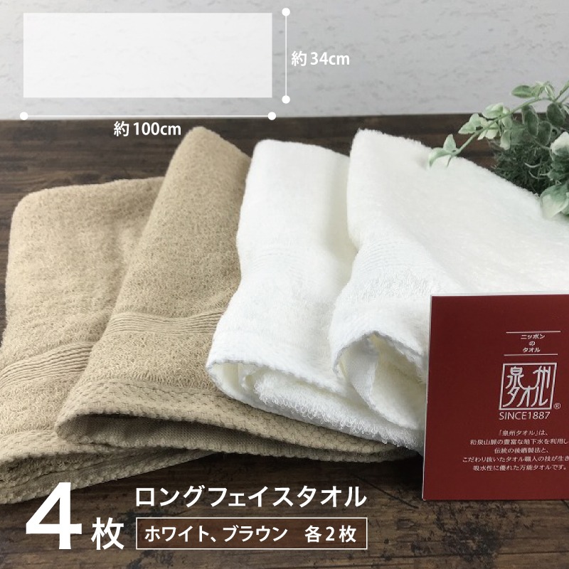- 010B042 やわらかロングフェイスタオル4枚セットB