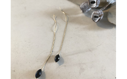 天然石ブラックスピネル(ブラック)のアメリカンスクリューピアス (KBD-8-2)