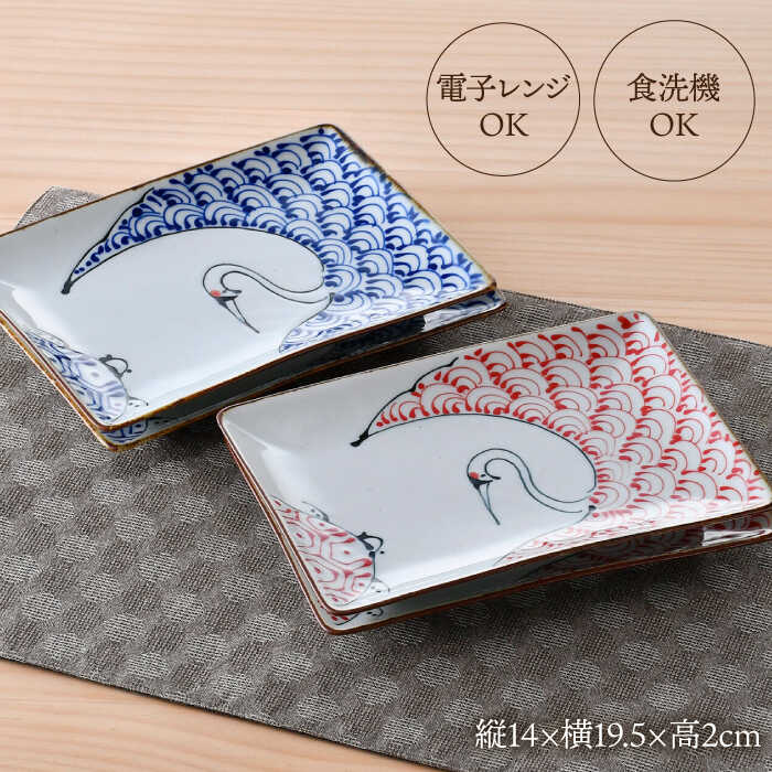 - 【ふるさと納税】【波佐見焼】つるかめ 長角皿 4枚セット【伸栄陶器】[JG07]