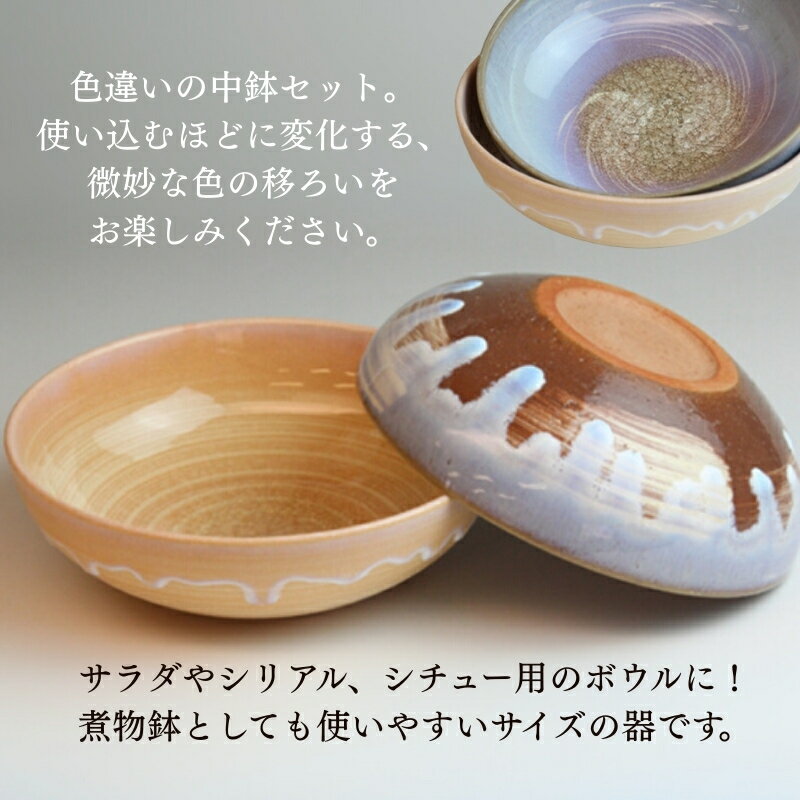 【ふるさと納税】萩焼 しずく・そら 中鉢ペア 和食器 中鉢 ペアセット ボウル どんぶり サラダボウル 皿 和皿 鉢 おしゃれ お洒落 食器 おしゃれ食器 和風食器 器 うつわ お皿 陶器 ギフト 人気 モダン 和モダン かわいい 山口県 萩市 日本製 デザイン器 茶色 ブラウン 水色