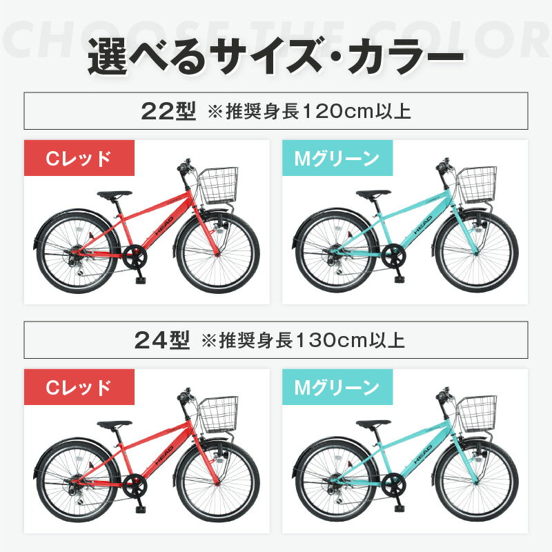 【ふるさと納税】HEAD エアレス ジュニアクロス VIGREX BAA クロスバイク 選べる サイズ カラー 22型 / 24型 6段変速 Cレッド / Mグリーン 自転車 完成品 組み立て 不要 ジュニア向け 普段使い アウトドア サイクリング 通勤 通学 お取り寄せ 大阪府 泉佐野市 送料無料
