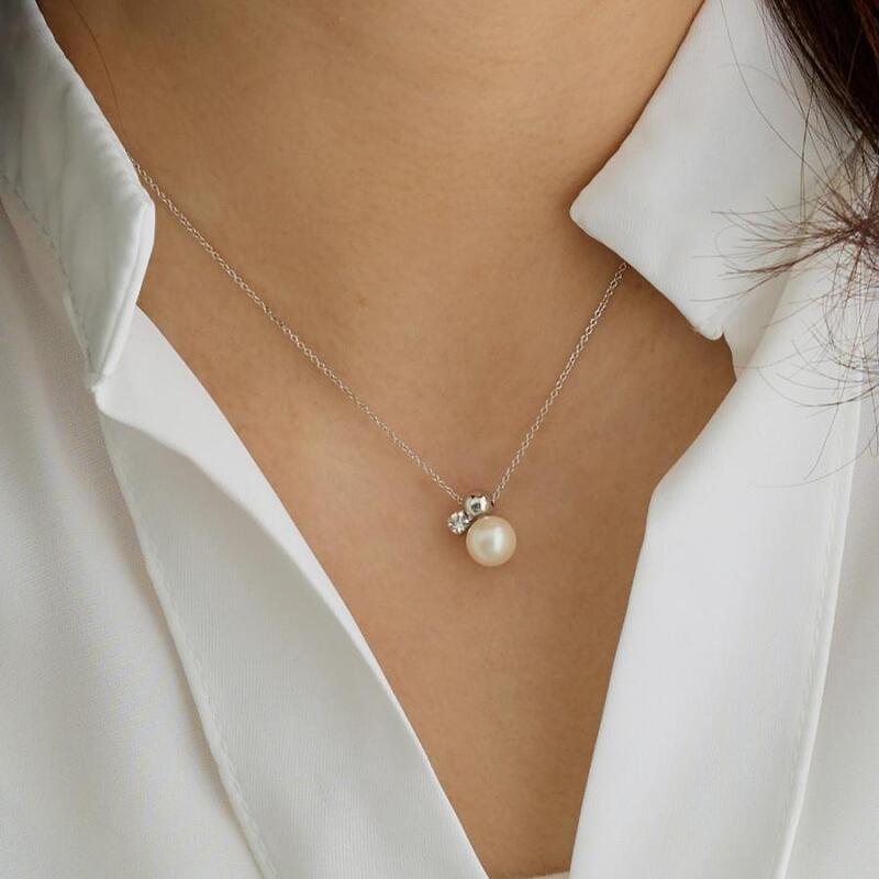 - 【ふるさと納税】艶やかパールにストーン寄り添うネックレス【043-020】選べるカラー シルバー ゴールド ピンクゴールド ネックレス パール アクセサリー ジュエリー K18GP カジュアル オフィス ギフト プレゼント ラッピング