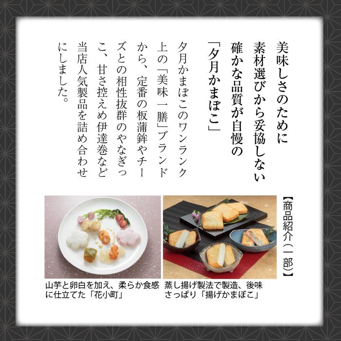 - 【ふるさと納税】夕月 美味一膳蒲鉾詰合せ【恵】(めぐみ) | 夕月美味一膳蒲鉾詰合せ 恵 蒲鉾 詰合せ ギフト 高級 贅沢 老舗 伝統 いわき 練り物 花小町 やなぎっこ 半板紅白 伊達巻 笹かまぼこ 揚げかまぼこ プレーン チーズ 野菜 プレミアム 彩り 豊富セット | AC010