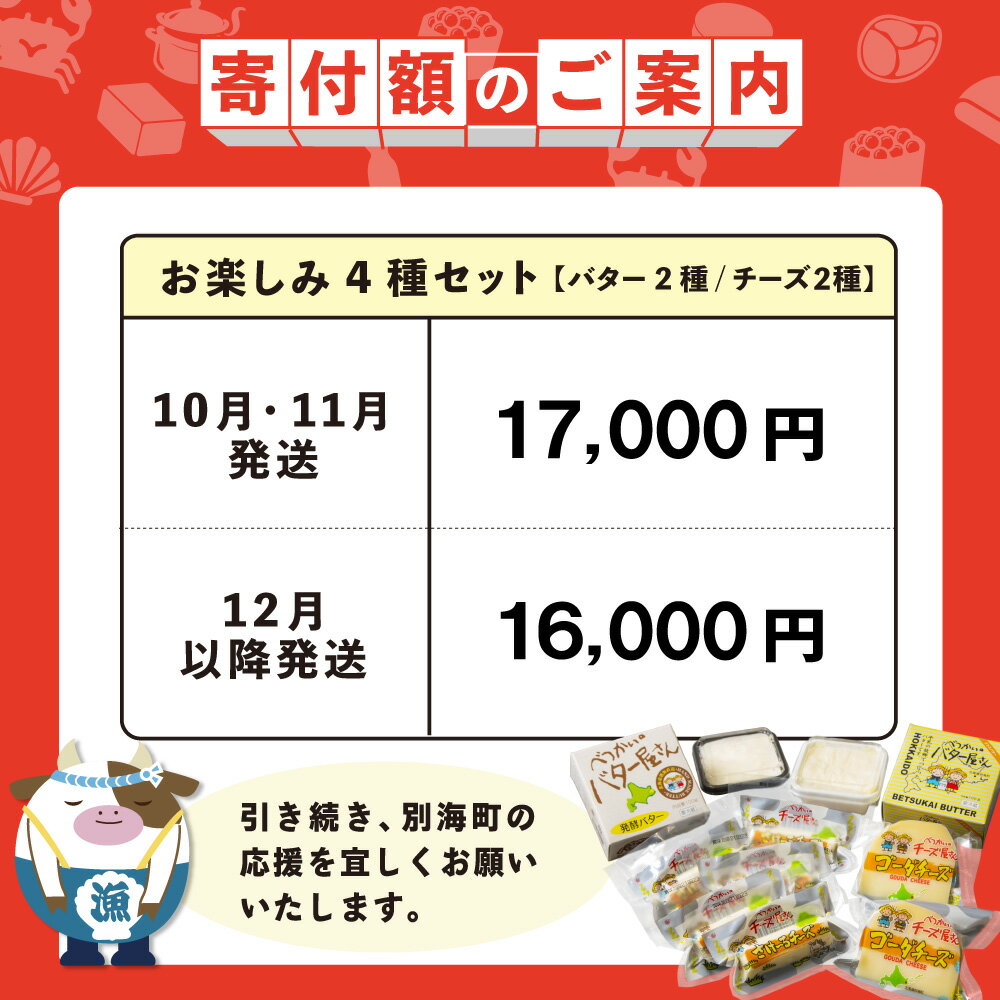 - 【ふるさと納税】 高評価★4.62 バター チーズ 詰め合わせ お楽しみ セットA 4種 計 600g 酪農日本一・別海町 酪農工場産直 ( ふるさと納税 バター 北海道 ふるさと納税 チーズ 訳あり おいしさ 小分け 個包装 べつかいバター 福袋 北海道別海町 )