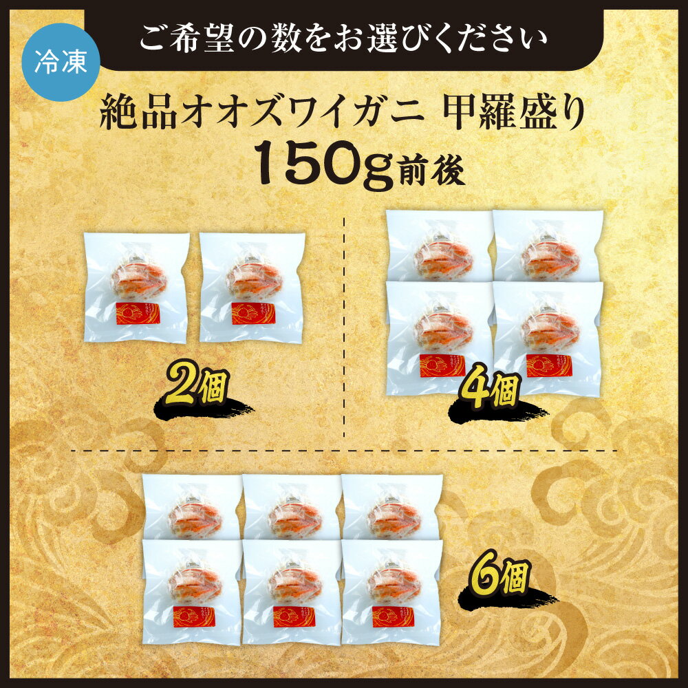 - 【ふるさと納税】 完全手作り! 北海道産 オオズワイガニ 甲羅盛り 【 選べる 数量 】 150g 前後 2個 4個 6個 カニ 蟹 300g 600g 900g 蟹味噌 むき身 お取り寄せ ボイル グルメ 冷凍 おつまみ 国産 魚介 甲殻類 水産 海鮮 厳選 北海道 札幌市