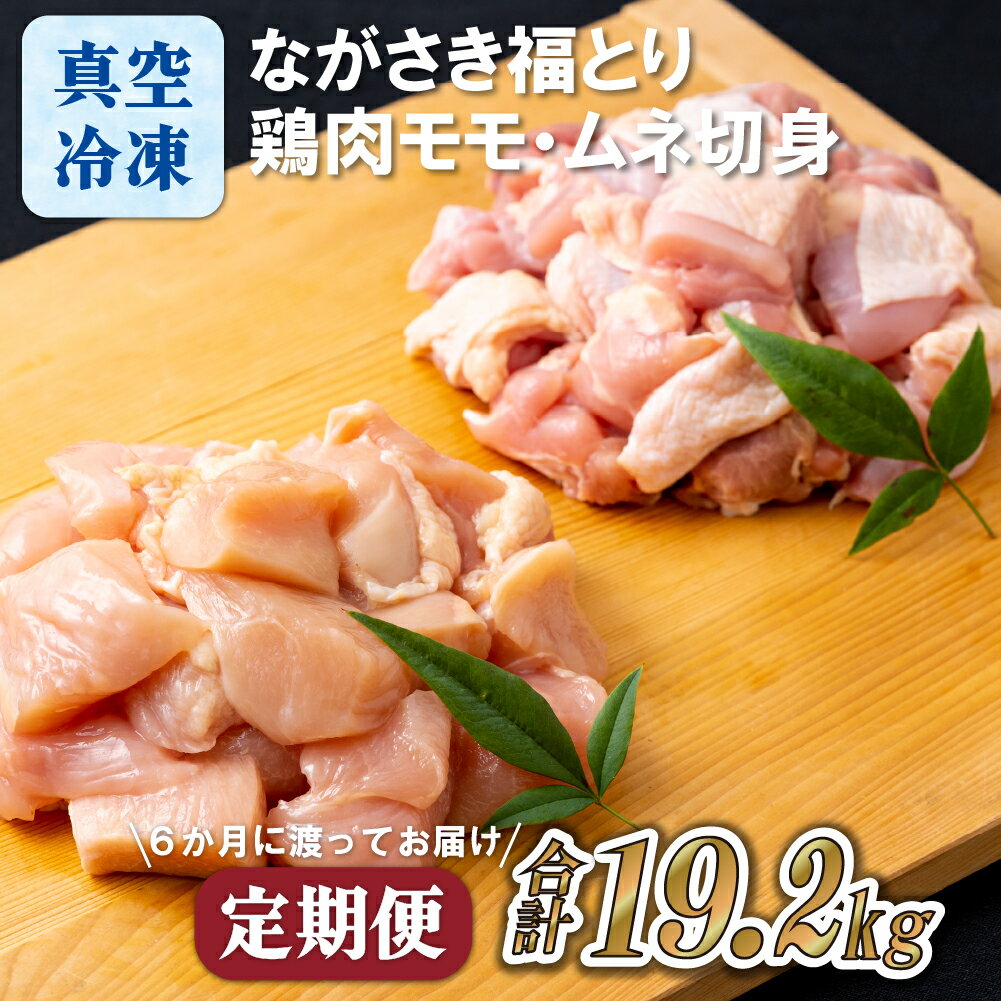 【ふるさと納税】【鶏肉もも・むね切り身 6回定期便】 ながさき福とり もも切り身 400g×4 むね切り身 400g×4 合計19.2kg 小分け 真空冷凍 真空パック 長期保存可能 冷凍 鶏肉 モモ ムネ 飼料にハーブ配合 臭みなし 筋や血管を手作業で除去 送料無料