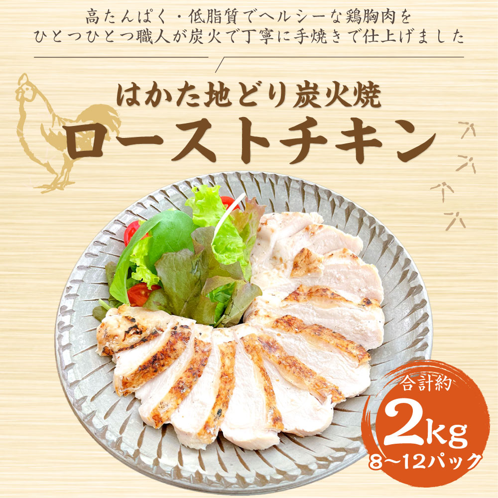 【ふるさと納税】手焼き はかた地どり炭火焼ローストチキン 計約2kg(8~12パック) 鶏肉 鶏むね肉 ムネ肉 胸肉 お肉 博多地鶏 高たんぱく 低脂質 ヘルシー 惣菜 おかず トッピング 冷凍 福岡県産 国産 九州 福岡県 うきは市 送料無料