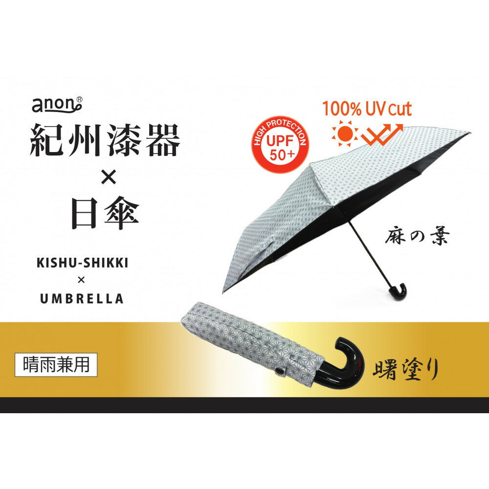 【ふるさと納税】【持ち手の色選択可】[ふるさと納税]anon 麻の葉 晴雨兼用傘 根来塗り or 曙塗り 黒コーティング加工 紀州漆器アンブレラ 和柄 日傘 100%UVカット UPF50+ 折りたたみ傘 ギフト箱入り