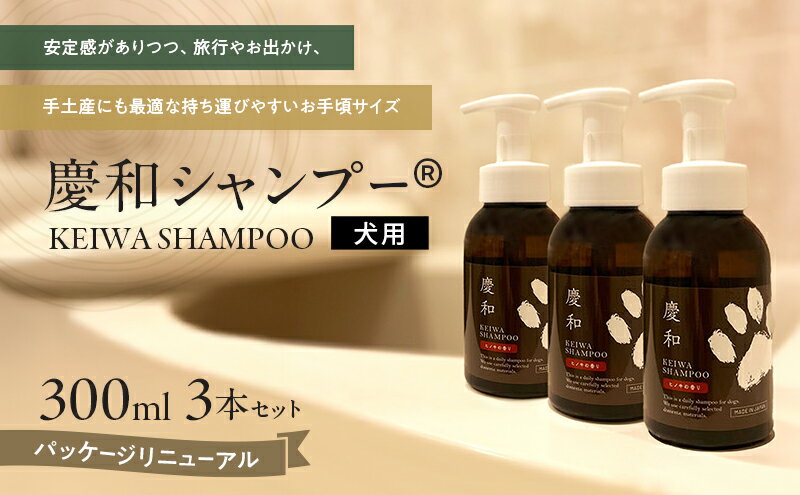 【ふるさと納税】動物病院皮膚科チームが開発・設計、フワフワの毛並みを実現する美容メーカーの独自技術を採用、厳選された国産原料を使用、旅行のお供にも最適な新しい犬用日常ケアシャンプー、「慶和シャンプー(登録商標)」300ml 3本セット