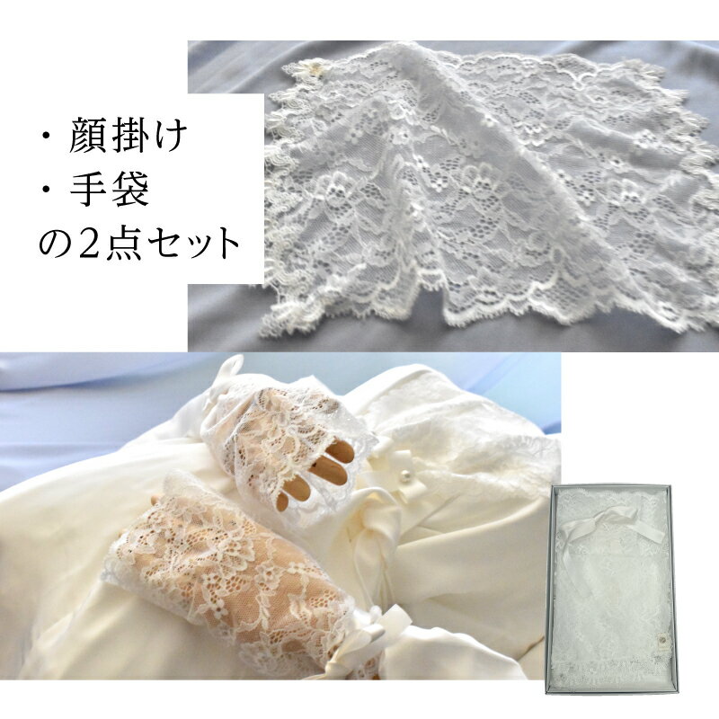 - 【ふるさと納税】鯖江産レースのエンディングアイテム2点セット(白箱付き) [E-15901] / 手袋 レース 顔掛け エンディングアイテム 葬送用品 終活アイテム 終活 旅立ちのギフト 葬儀用小物 お別れ 故人 繊維 日本製 福井県鯖江市