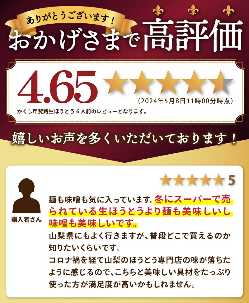 - 【ふるさと納税】 【高評価★4.60】 ほうとう 山梨 6000円 麺 みそ味 常温 無添加 無塩 長期 保存 郷土料理 国産 6人前 2人前×3 k038-001