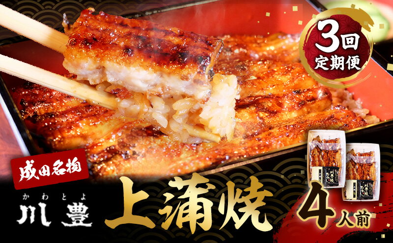 - 【ふるさと納税】国産 高級うなぎ 定期便 年3回 上蒲焼 4人前 セット 成田名物 川豊のうなぎ 高級食材 冷凍 2尾 川豊 国産うなぎ うなぎ 鰻 蒲焼き 蒲焼 鰻蒲焼き 詰め合わせ 惣菜 和食 日本料理 高級品 ギフト 贈り物 プレゼント 3回 お楽しみ 千葉 千葉県 成田市