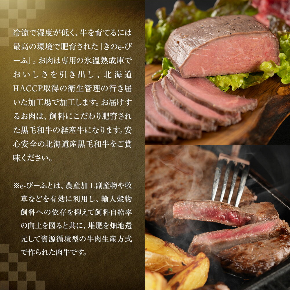 - 【ふるさと納税】【数量限定】「北の牧場舎」きのe-びーふ 黒毛和牛4種セット 6点セット 合計1230g 黒毛和牛 ロースステーキ ハンバーグ ローストビーフ 焼肉 ステーキ 牛 牛肉 肉 お肉 セット 詰め合わせ 冷凍 国産 北海道 音更町 送料無料 楽天スーパーSALE 9月開催