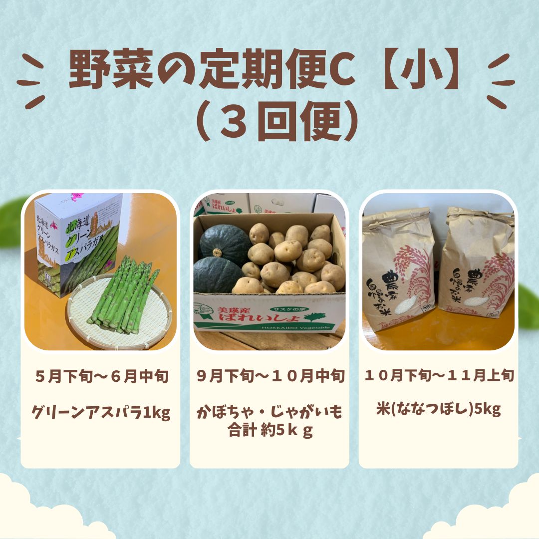 - 【ふるさと納税】 野菜 定期便 Cセット 3ヶ月 ≪令和8年産予約受付!≫ 送料無料 3回 セット 詰め合わせ アスパラ アスパラガス 3回 秋野菜 米 新米北海道 北海道美瑛 北海道美瑛町 美瑛町 美瑛産野菜 北海道産野菜 野菜の定期便 サスケの家 定期便[037-17]
