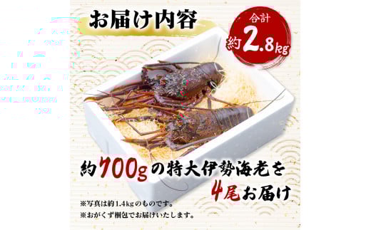 伊勢海老 特大 約2.8kg 約700g×4尾 伊勢えび 伊勢エビ いせえび イセエビ 海老 えび エビ 海鮮 海産物 海の幸 おせち 高級 国産 海鮮 ギフト
