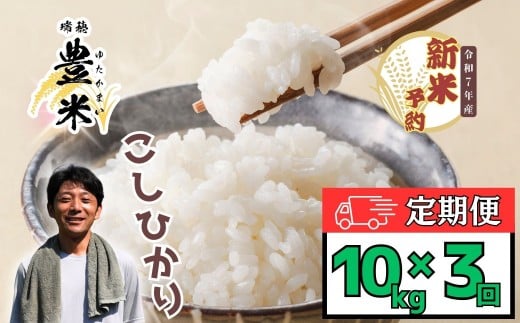 <2025年10月より3回>【先行予約】<令和7年産 新米> こしひかり 瑞穂 豊米(ゆたかまい) 定期便 10kg×3回 (7-64-10)
