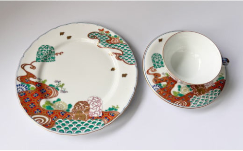 有田焼 金蘭手 花兎文 (はなうさぎもん) ティー&デザート皿セット【有田焼 花伝作】食器 器 うつわ 陶磁器 ティーセット ポット ティーポット カップ ティーカップ カップ&ソーサー プレート 皿 デザート皿 A240-7