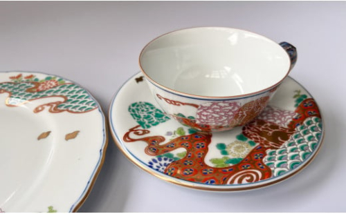 - 有田焼 金蘭手 花兎文 (はなうさぎもん) ティー&デザート皿セット【有田焼 花伝作】食器 器 うつわ 陶磁器 ティーセット ポット ティーポット カップ ティーカップ カップ&ソーサー プレート 皿 デザート皿 A240-7