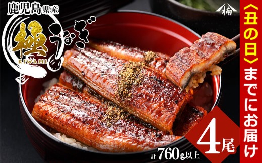 - 【丑の日までに配送】楠田の極うなぎ 蒲焼き 190g以上×4尾(計760g以上) c6-083-us