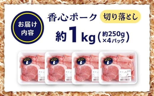 『香心ポーク』切り落とし 約250g×4パック(計約1kg)豚肉 冷凍 熊本県産 【有限会社 コーシン】 豚肉 切り落とし 国産 熊本県 熊本 冷凍 1kg 小分け 250g 炒め物 豚汁 豚丼 肉じゃが 生姜焼き 小間切れ 煮物 万能 使いやすい こま切れ おかず セット [AYCK024]
