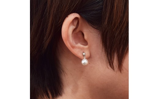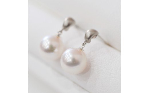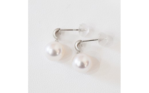 S085-514_あこや真珠 天草 ピアス 7.5mm - 8mm ホワイトピンク 真珠 半円 マット K14WG