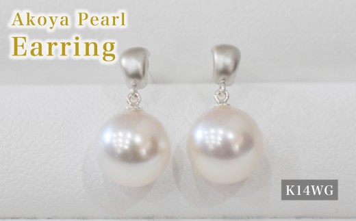- S085-514_あこや真珠 天草 ピアス 7.5mm - 8mm ホワイトピンク 真珠 半円 マット K14WG