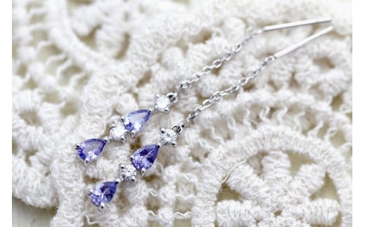 - ピアス タンザナイト ペアシェイプ プラチナ PT900 ダイヤモンド 0.16ct レディース ドロップ 滴 雫 チェーンピアス 揺れるピアス 誕生石 アクセサリー ジュエリー アクセ 【f090-pt】 [オーダーメイドジュエリーメイ 山梨県 韮崎市 20745204]