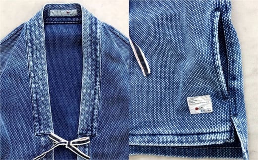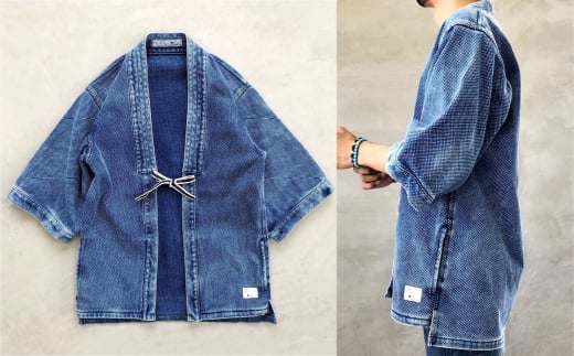 - 【大サイズ】BLUE SAKURA 刺し子 着物ジャケット(半袖)DNTSW07LID 着物 ジャケット モダンジャケット 上着 服 ファッション 岡山県 倉敷市