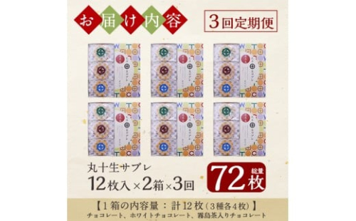- C-086-C 【3回定期便】丸十生サブレ詰め合わせ(12枚入×2箱×3回 計72枚)【徳重製菓とらや】霧島市 生サブレ サブレ しっとり なめらか マイルド お菓子 焼菓子 おやつ お土産 贈り物 手土産 チョコレート ホワイトチョコレート 霧島茶チョコレート