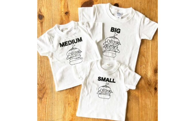 - 3人兄弟姉妹でおそろい/ハンバーガー SMALL×MEDIUM×BIG プリント/ Tシャツ3枚組ギフトセット【出産祝い・誕生日・ギフト・プレゼント】 [№5875-0654]