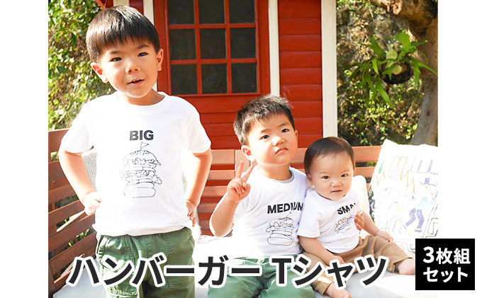 3人兄弟姉妹でおそろい/ハンバーガー SMALL×MEDIUM×BIG プリント/ Tシャツ3枚組ギフトセット【出産祝い・誕生日・ギフト・プレゼント】 [№5875-0654]