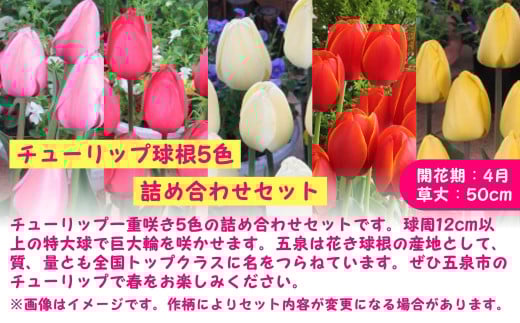 - 【 先行予約 】 チューリップ 球根 特大球 70球入 ( 5色×14球 ) 一重咲き 5色詰め合わせセット | 新潟県 五泉市 新潟県花卉球根農業協同組合 ( 2025年9月中旬より順次発送 )