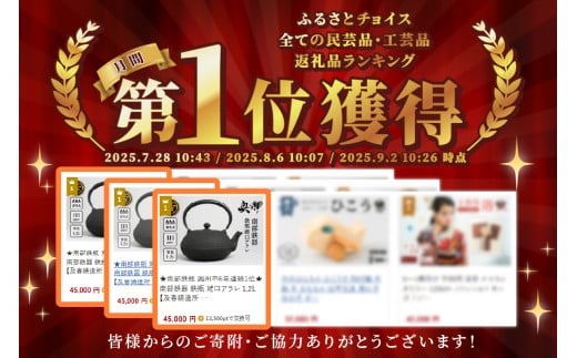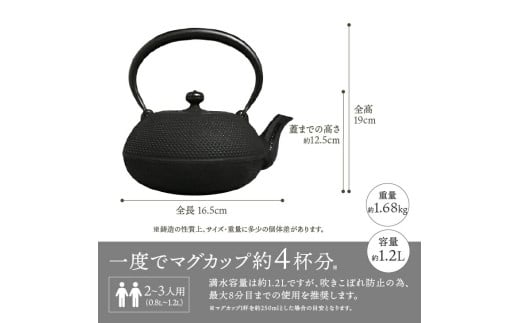 ★南部鉄瓶 奥州市6年連続1位★ 南部鉄器 鉄瓶 姥口アラレ 1.2L 【及春鋳造所 作】 IH調理器 伝統工芸品 やかん ケトル キッチン用品 食器 日用品 雑貨 日本製 人気 ランキング [Y0035]