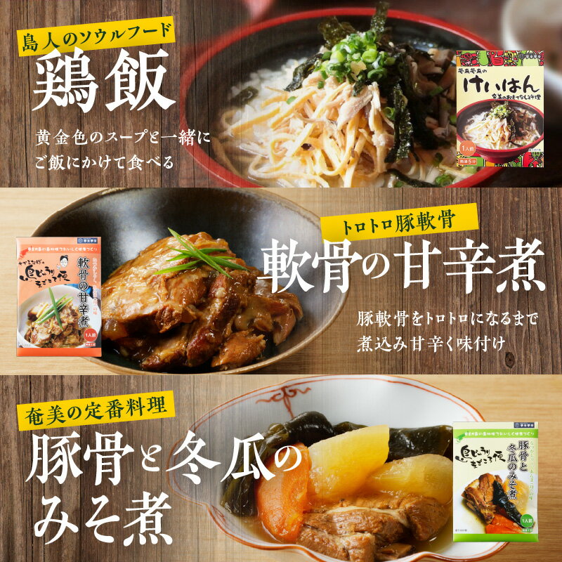 【ふるさと納税】 奄美の伝統 島料理 レトルト 6パック セット 奄美 惣菜 鶏飯 軟骨 甘辛煮 豚骨 冬瓜 みそ煮 ヤギ汁 パパイヤ カレー 伝統 料理 ジビエ 塩分控えめ ソウルフード おかず 三環舎 鹿児島 奄美市 おすすめ ランキング プレゼント ギフト