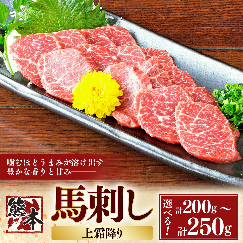 【ふるさと納税】〈選べる容量〉熊本 馬刺し 上霜降り 約200g (約50g×4) または約250g (約50g×5) 馬 馬肉 桜肉 低カロリー 栄養豊富 低脂質 生姜醤油付き 熊本県 湯前町 送料無料
