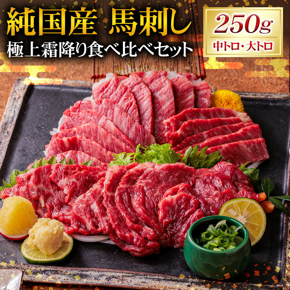【ふるさと納税】純国産 馬刺し 極上霜降り 食べ比べセット 計250g(大トロ×2パック・中トロ×3パック) 各50g 馬肉 馬刺 お肉 希少部位 専用醤油付き 詰め合わせ 冷凍 熊本県産 国産 九州 熊本県 湯前町 送料無料