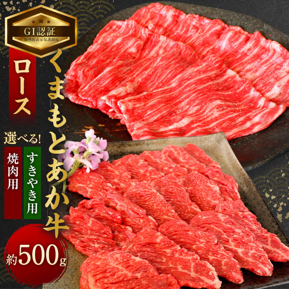 - 【ふるさと納税】<選べる種類>【GI認証】くまもとあか牛 ロース すきやき用 もしくは 焼肉用 約500g×1 あか牛 赤牛 牛肉 和牛 肉 お肉 ロース肉 赤身 スライス すき焼き すき焼 焼き肉 やきにく BBQ バーベキュー 冷凍 熊本県 相良村 送料無料