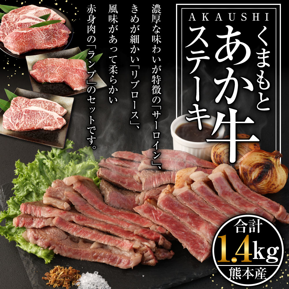【ふるさと納税】くまもとあか牛ステーキセット2 合計1.4kg あか牛 サーロイン 500g リブロース 500g ランプステーキ 400g ランプ 牛肉 冷凍 国産 九州産 熊本産 赤身 ステーキ お肉 肉 送料無料