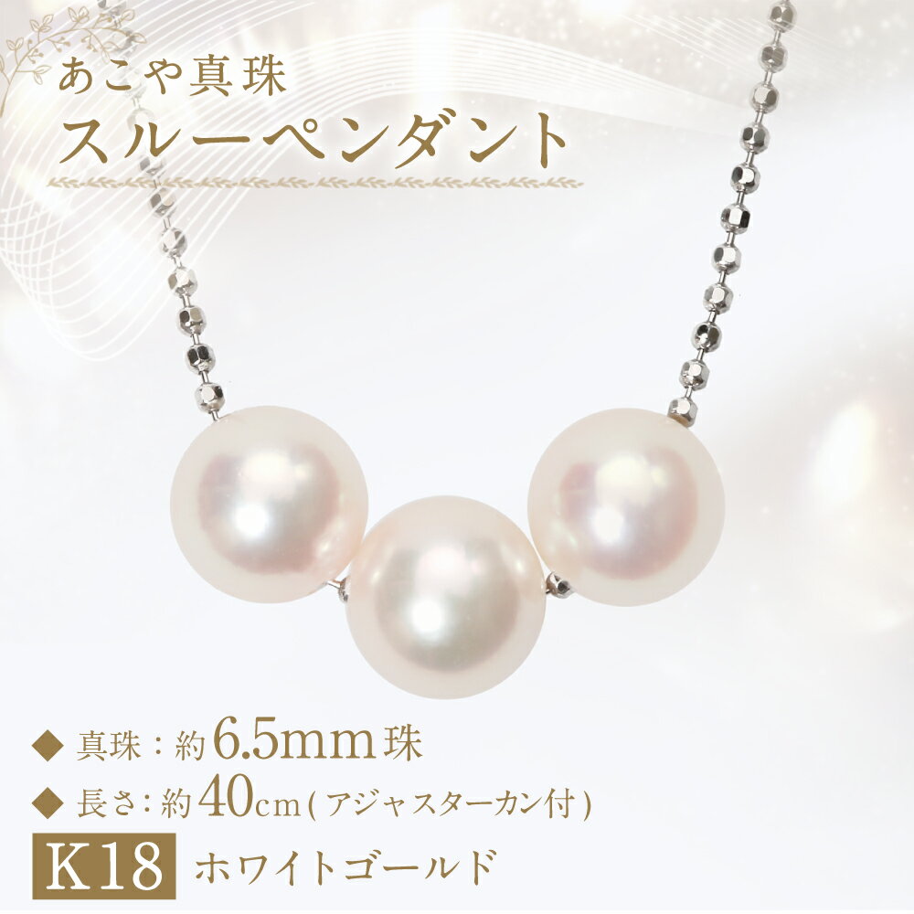 【ふるさと納税】あこや真珠(約6.5mm珠、3粒)スルーペンダント 40cm K18ホワイトゴールド K18WG 18金 パール レディース ジュエリー アクセサリー ファッション 長崎県 長崎市 送料無料