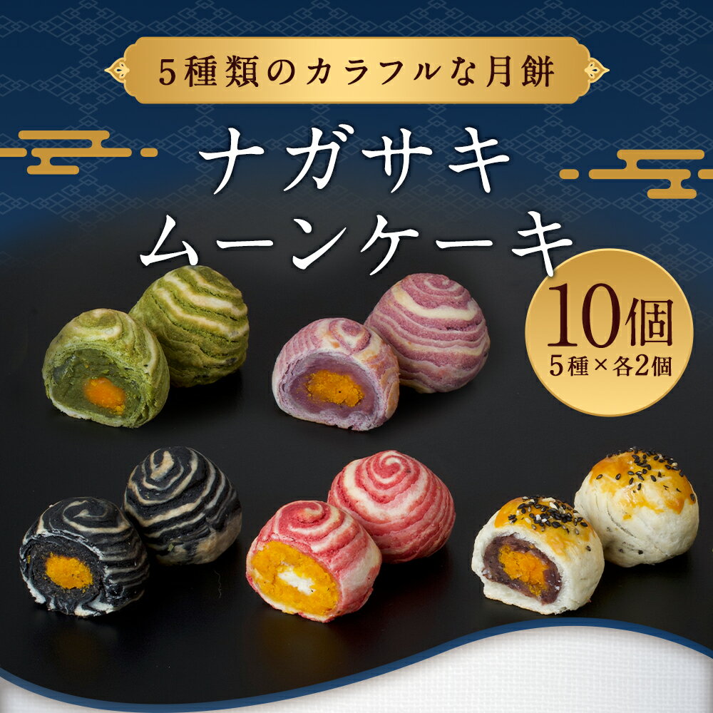 - 【ふるさと納税】5種類のカラフルな月餅 ナガサキムーンケーキ 各2個×5種 計10個 小豆 チーズ 紫芋 抹茶 黒胡麻 月餅 おやつ 中華菓子 スイーツ お菓子 九州 長崎県 長崎市 送料無料