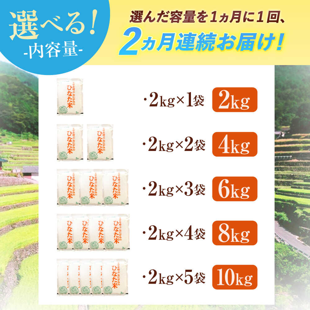 - 【ふるさと納税】<容量選べる!>【2回定期便】虚空蔵の清流水で育った棚田米『ひなた米』 2kg~10kg 【木場中山間管理組合】[OCM002]